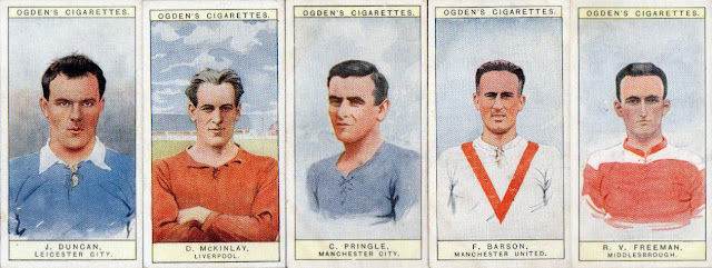 An illustrated checklist for this collection, thanks to Alan Probert for all the pictures. The original checklist can be found here - Ogden's Cigarettes - Captains of Association Football Clubs, & Colours.
