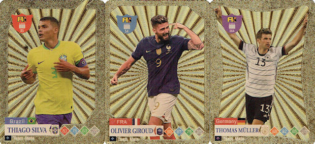 PVC cards sold in a PVC tuck box. The World Football Stars has been pinched from the various Top Trumps collections and the cards include one of Panini's Adrenalyn XL logos.